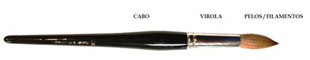 O pincel é composto de: Cabo, Virola e Pelos / Filamentos